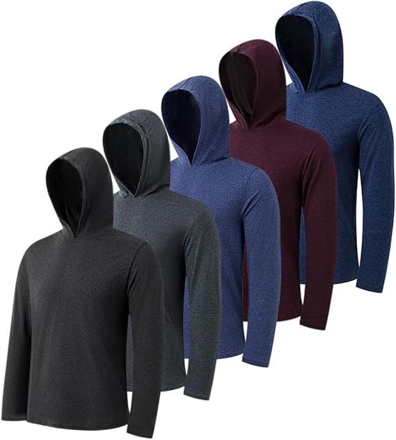 5 Pack Men’s Lightweight Pullover Hooded Tees